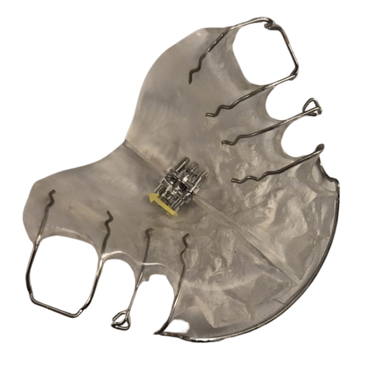 This is a personalised (handcrafted), removable lower expander that widens the lower arch and helps the mandible settle forward and upward. It’s built to balance an upper expander so your bite closes smoothly and changes feel stable. Our products are not intended for medical or therapeutic use.